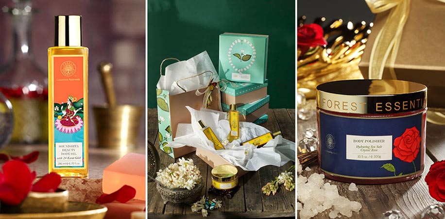 Delight your guests with an unforgettable gift set from Forest Essentials filled with luxury ayurveda skin care products and toiletries for men and women this wedding season.
