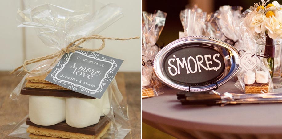 Give your guests more to love with the s’mores wedding favor kits which include crisp graham crackers, melt-in-the-mouth marshmallows and gorgeous chocolate slabs wrapped in clear packaging.