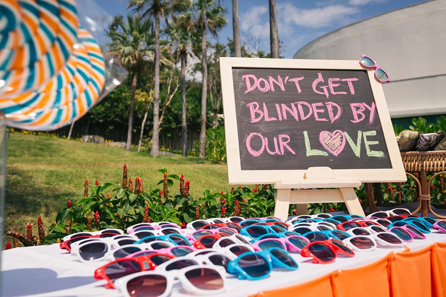 Shady business this; bring the rockstar out in all your guests at the pool party, mehndi or wedding with colorful sunglasses to go with their attitude.