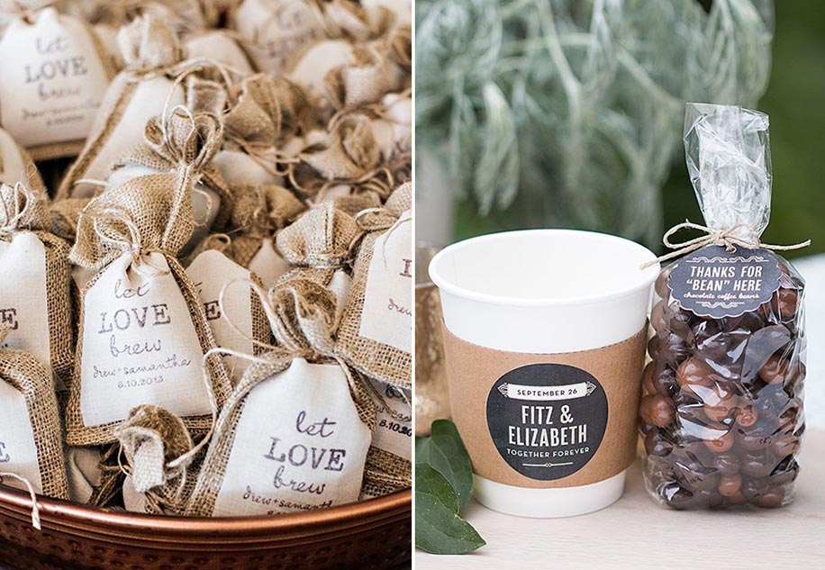 Gift personalized coffee wedding favors on your special day and they’ll be thinking of you every morning as they relish their morning cuppa.
