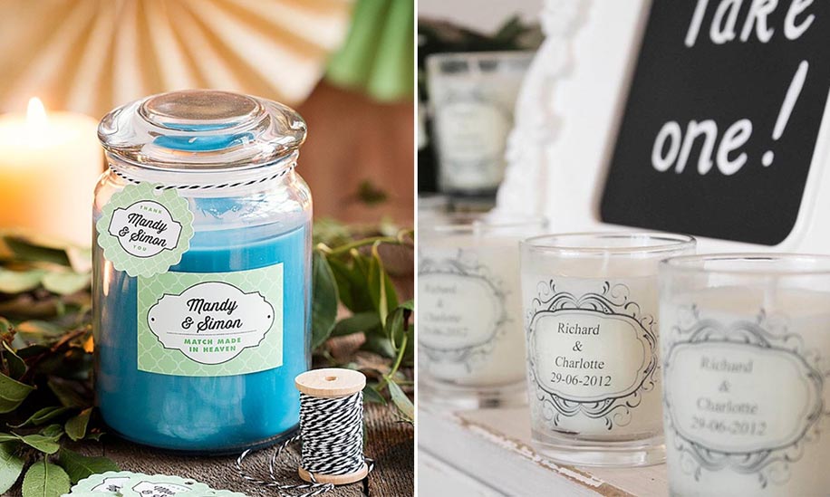 Add an element of romance and elegance to your wedding favors with scented candles. They’re visually appealing and can be customized to the theme of your wedding.