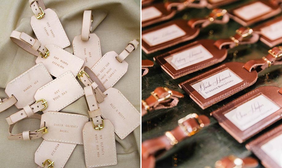 If you are jet-setting to an exotic location for your destination wedding/a>, then share your style with personalized luggage tags as wedding favors. They make for fabulous travel themed and destination wedding favors.