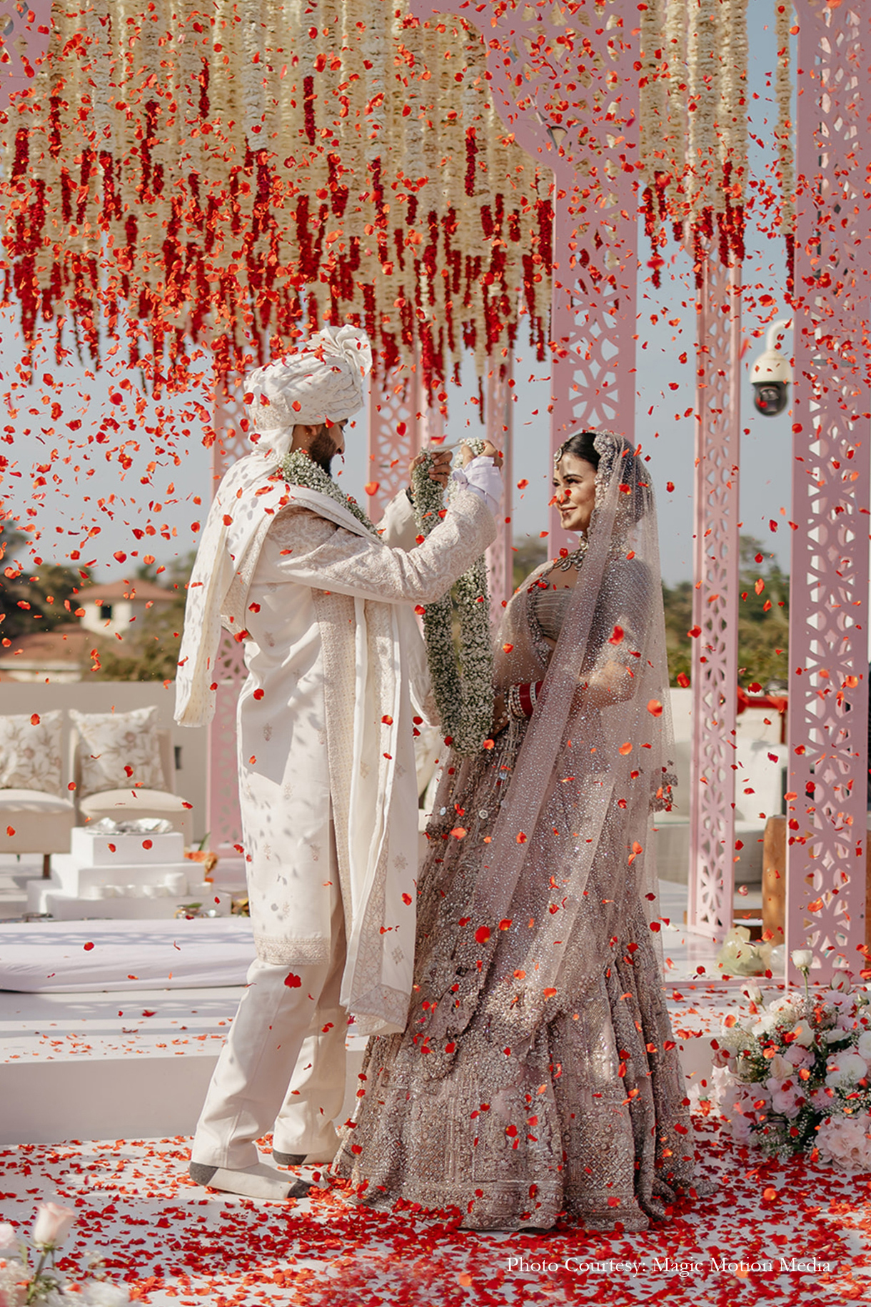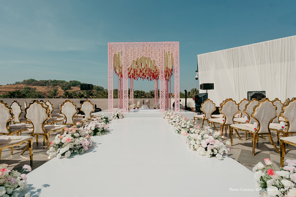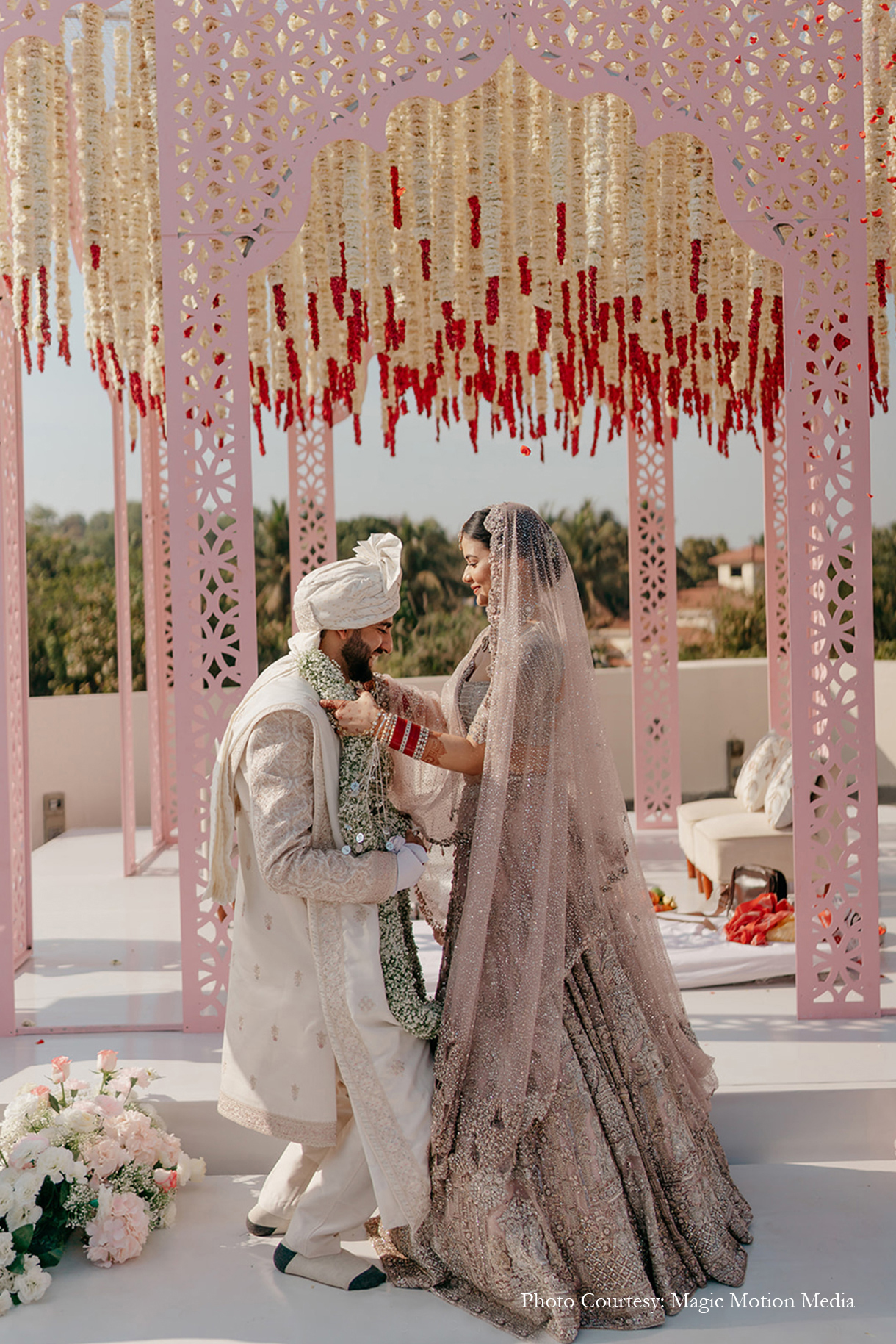 Aashna Sharma and Utfal Arora’s wedding in Goa was nothing less than a fairytale come to life with vibrant themes planned by WeddingSutra Favorite – F5 Weddings. Designing each celebration was WeddingSutra Favorite – Nazara, who at the crux of every design conveyed the couple’s heartwarming journey of love. Photographing the couple as they took the plunge into marital bliss was WeddingSutra Favorite – Magic Motion Media.