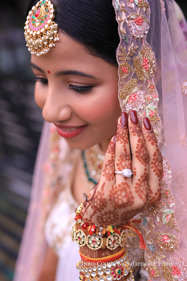 “To capture every moment of our wedding celebrations, we entrusted the talented team of Safarnama films with the responsibility of capturing our special memories. I chose Aarti Makker for my hair and makeup and she gave me flawless looks for each function. We did our entire trousseau shopping from Kolkata.”