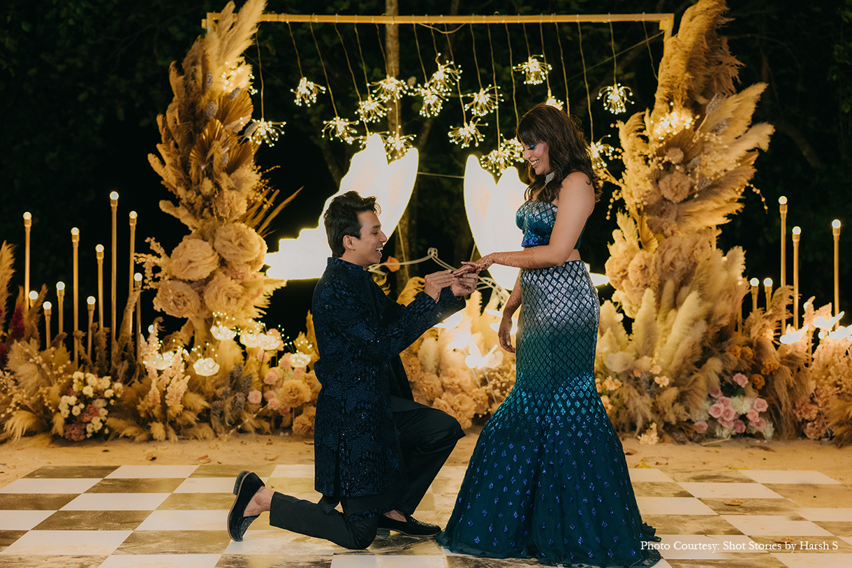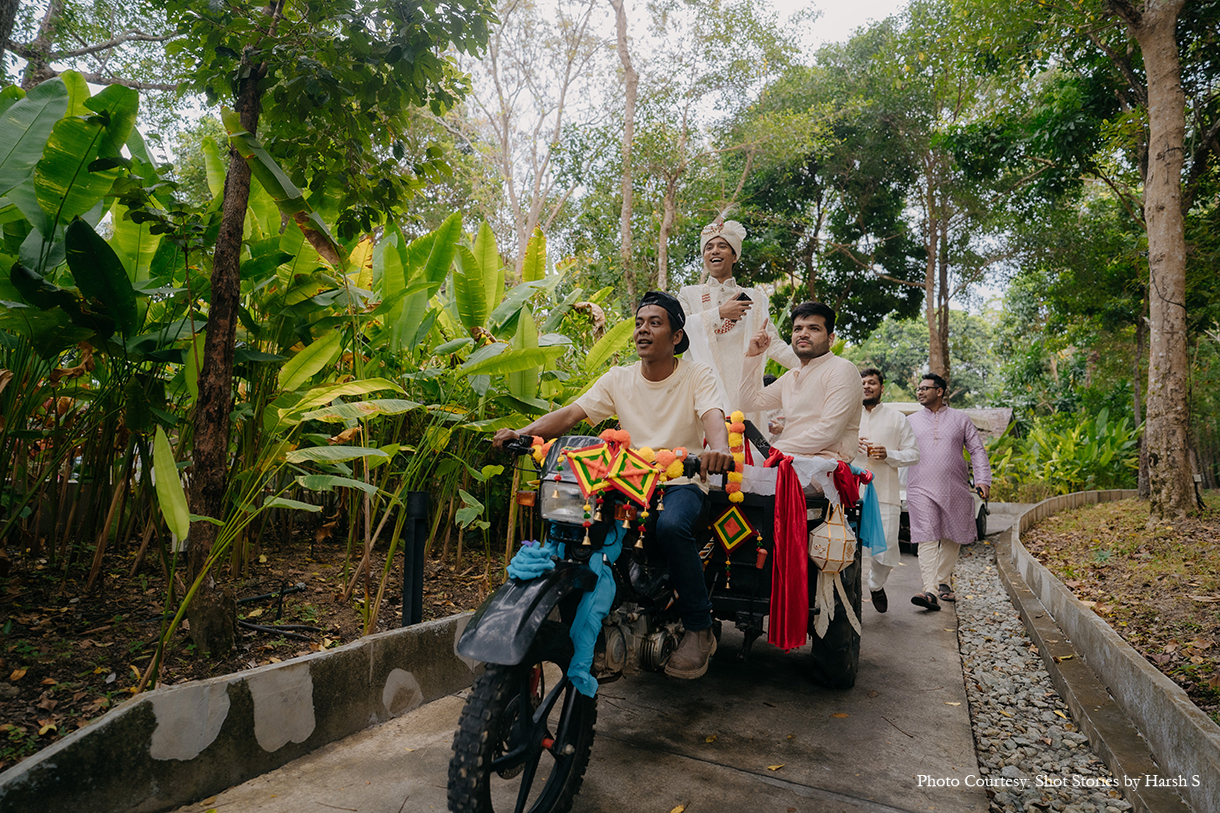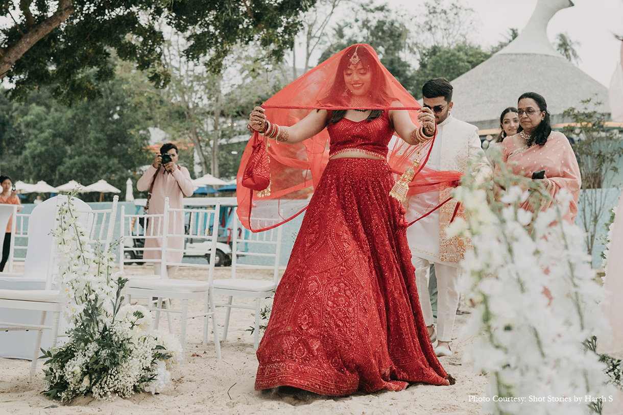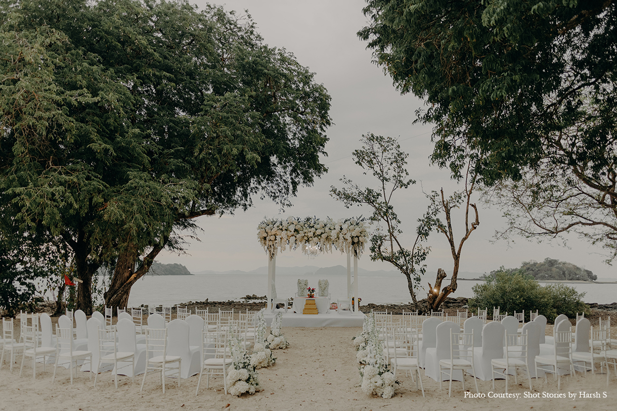 “We always envisioned a wedding that felt unmistakably ‘us’, i.e., intimate, full of personality, and unlike anything conventional,” share Aishwarya and Vishal. “A sunset beach ceremony had always been Aish’s dream, while Vishal wanted the freedom to celebrate without restrictions on music, timings, or even smoking. Since we were planning and funding the entire wedding ourselves, we were clear on one thing—there would be no compromises. Every decision had to reflect our story.” As they scouted locations, Thailand emerged as the perfect canvas. “The warmth of Thai hospitality far surpassed anything we experienced elsewhere, and the country offered flexibility and value that matched our vision and budget. And when we stumbled upon a beautiful island resort just 10 minutes from Phuket, we knew we’d found the one—private, luxurious, and ideal for hosting those dearest to us,” they recall.