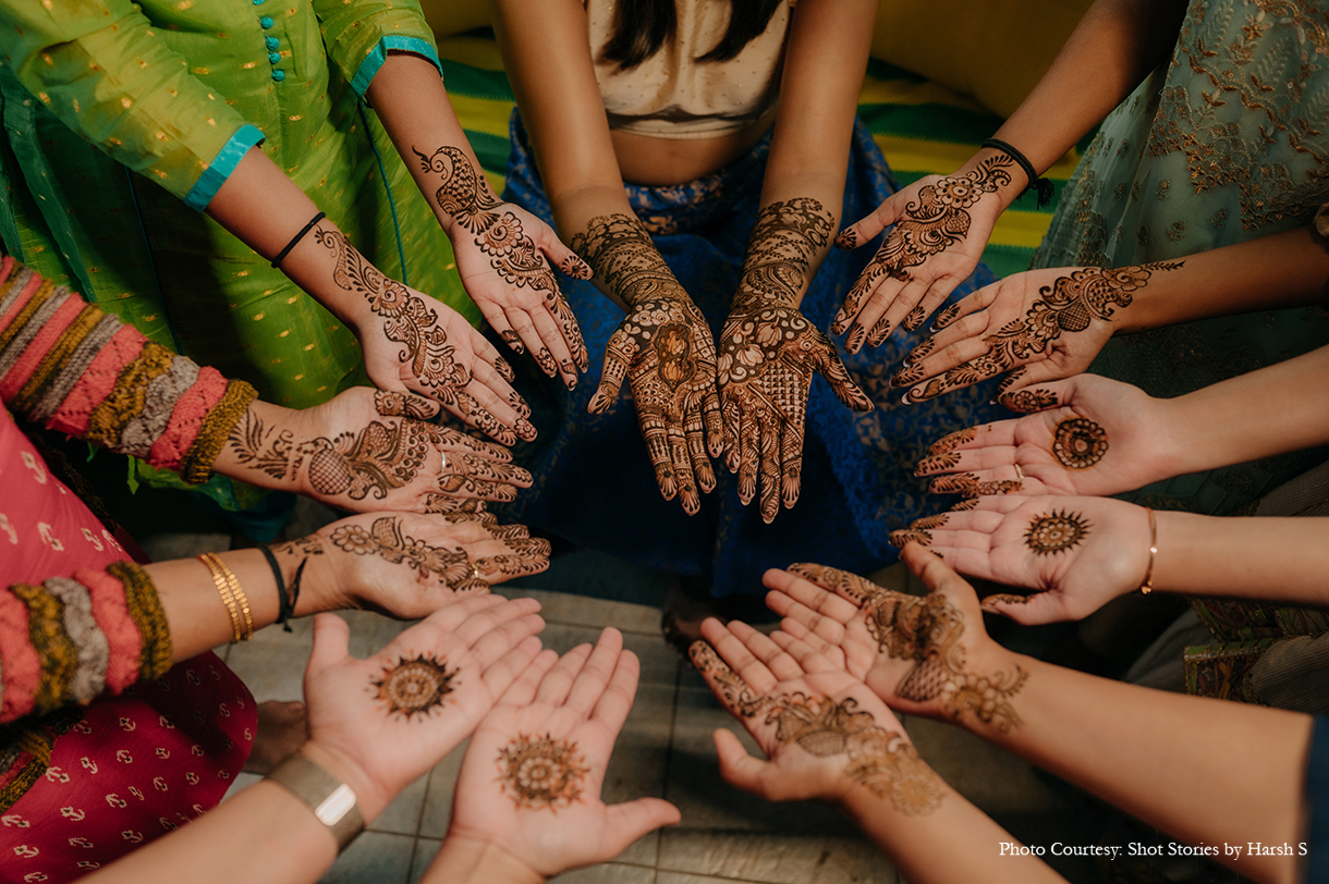 Aishwarya and Vishal’s mehndi celebration was a warm, intimate gathering steeped in laughter, tradition, and personal touches. Set against a cozy indoor backdrop adorned with cheerful yellow and green drapes, the space exuded a homely charm that felt both festive and heartfelt.