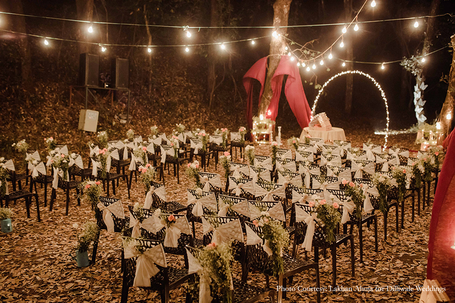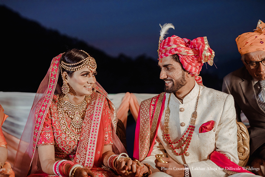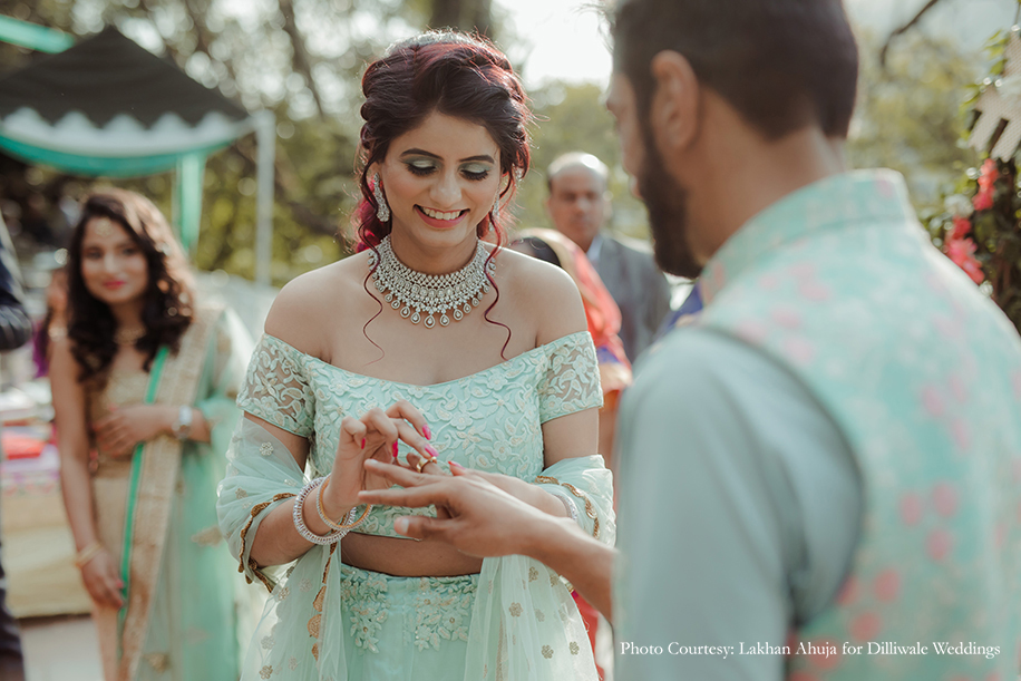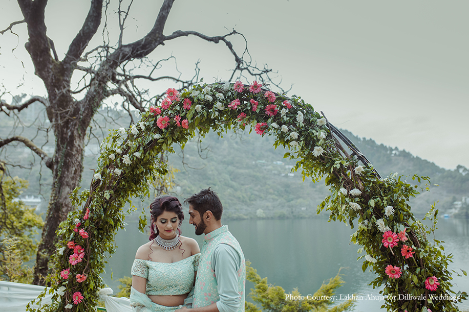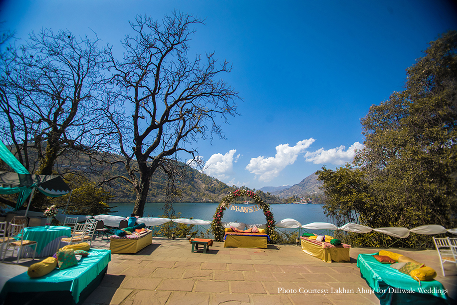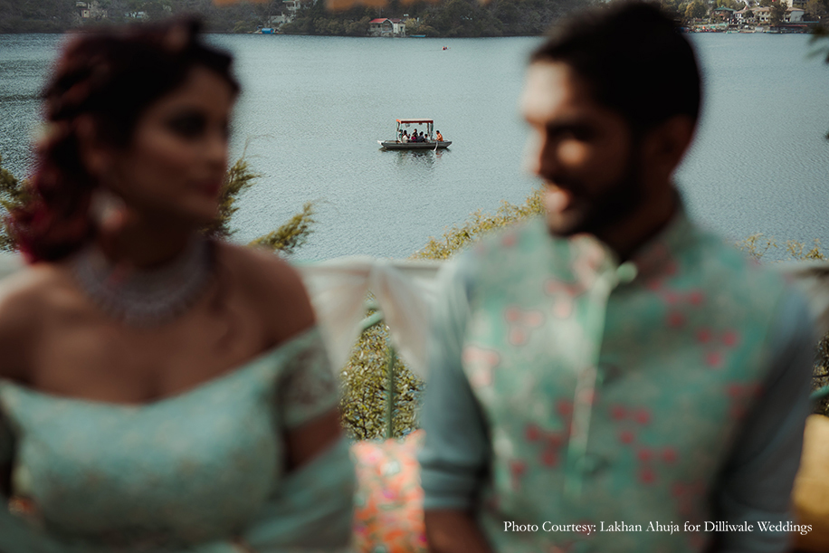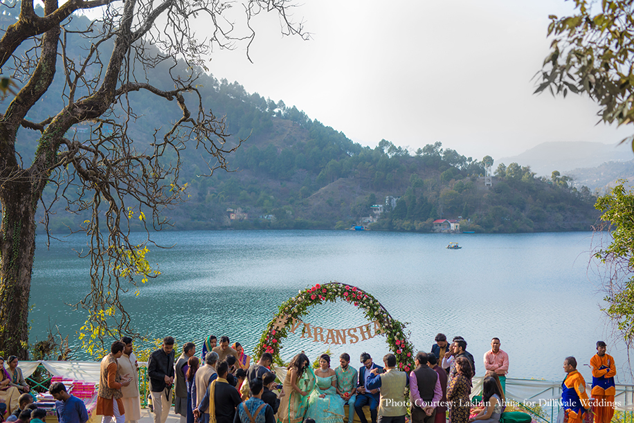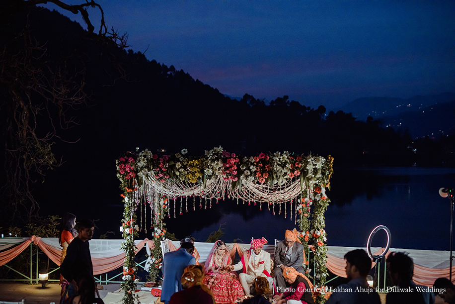 The wedding celebrations kickstarted with an outdoor engagement ceremony that took place against the splendid backdrop of the Naukuchiatal Lake in the serene hill station of Nainital in Uttarakhand.