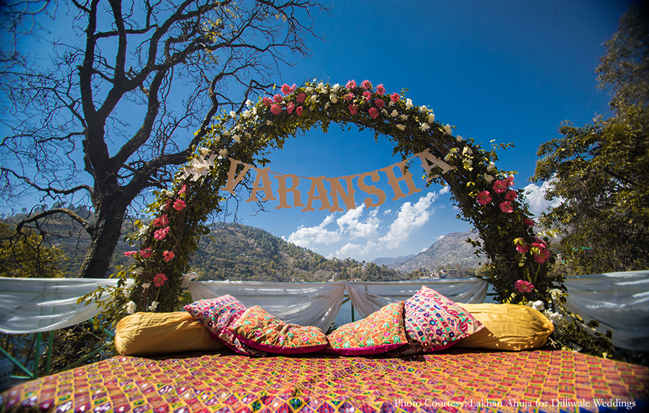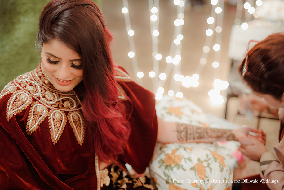 Akansha’s mehendi function was an outdoor night soiree. “Although the gorgeous decor made for stunning shots captured by Dilliwale Weddings, the chilly night mountains winds were a little difficult to bear.”