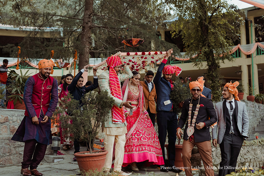 Beautifully captured by WeddingSutra Favorite – Dilliwale Weddings, Akanksha and Vardaan’s wedding in the charming hills of Nainital was a festive affair with a vibrant ‘Holi-Haldi’ party and a bike baraat. Bride Akanksha shares how the wedding festivities unfolded.
