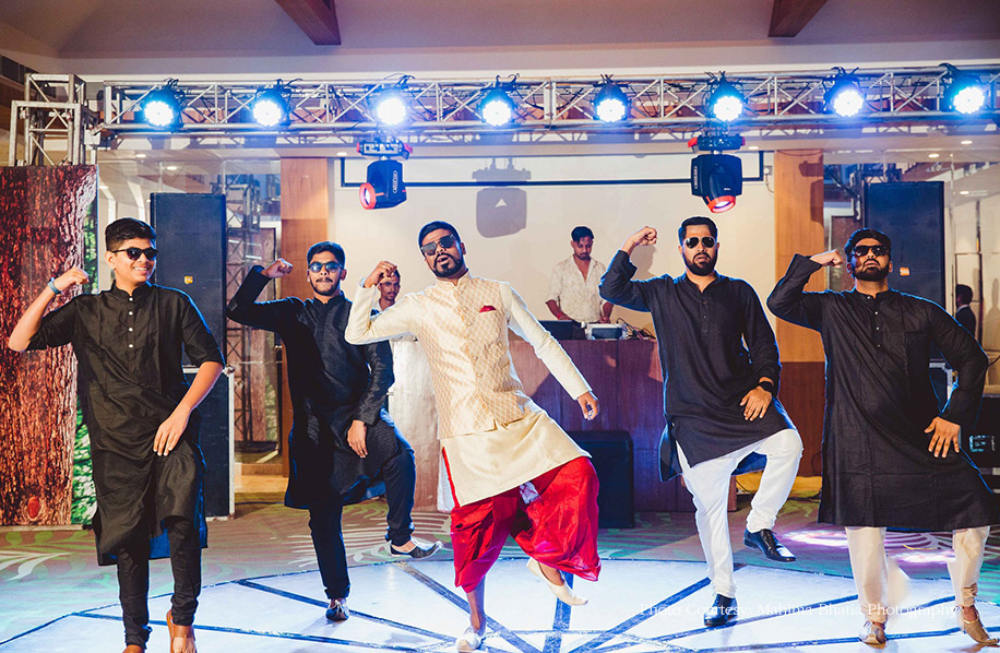 Their sangeet and cocktail night was all about bright lights, big smiles and lots of merrymaking. Though we couldn’t pick our personal favorite, both the groom’s side and the bride’s side sure did set the stage on fire with their impressive dance performances. For the evening the star couple picked a red Anita Dongre lehenga and an off-white kurta jacket set with red dhoti pants from Frontier Raas.