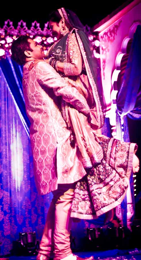 The theme for the evening Sangeet was Arabian Nights where Akruthi looked like a Mughal Princess in a stunning green lehenga, inspired by Hyderabad’s Nizami influences. Nikhil wore an ornate sherwani by Mumbai based designer Joe Mansoori. Both the bride and groom and their close friends danced to Bollywood hits with in-between notes from the comperes. Everyone was all ears, when Nikhil’s cousin spoke about how the bride and groom met, and how Nikhil proposed to Akruthi. The highlight of the evening was the presence of a Tamura dancer from Dubai who entertained the audience with a scintillating performance that left everyone mesmerized.