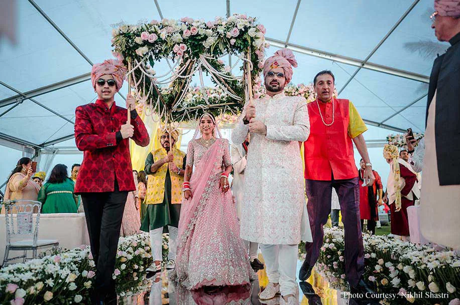 Bride’s Outfits: Anamika Khanna (Ganesh Staphna), Akanksha Gajria (Mehndi), Gaurav Gupta (Sangeet), Anushree Reddy (Wedding)