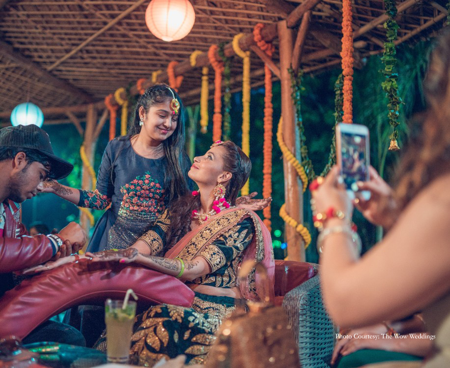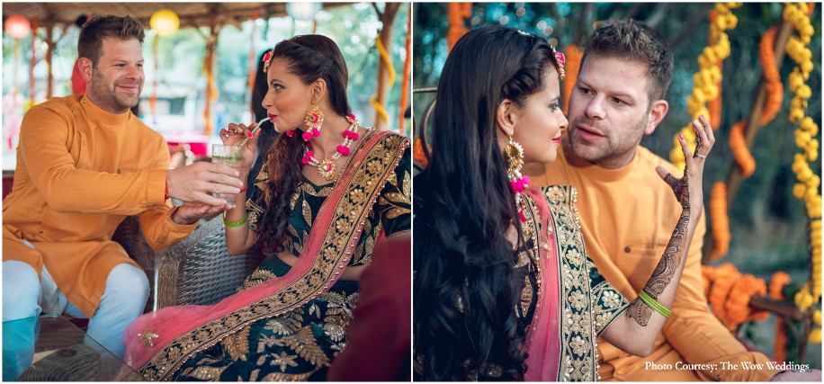 “The Mehndi and Sangeet was arranged to just break the ice between the traditional Haryana family and a modern American family,” Anjali says, “Kyle came up with an idea of doing it informally in a space where people can get involved in activities and we decided on Patio in Gurgaon. We started off with paintball which was so much fun, and then later, we had the Mehndi function which was followed by lots of dancing and laughter.”