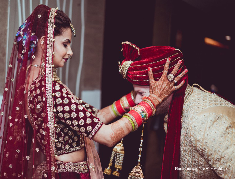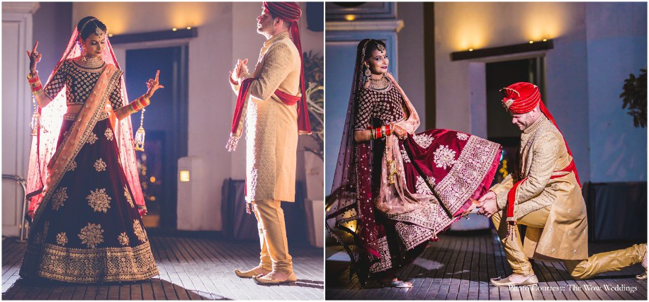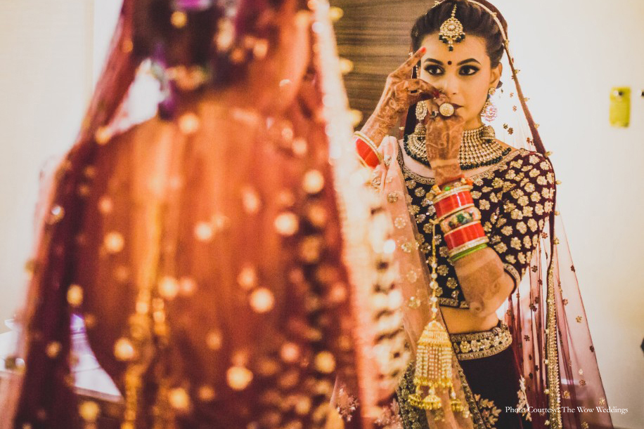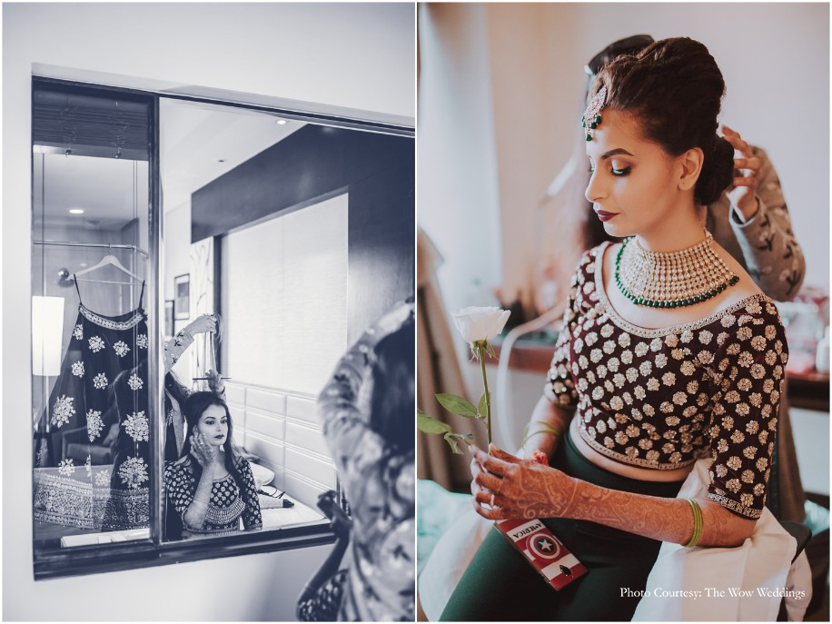“I always wanted to wear a wine colored lehenga with beautiful green jewellery for my wedding and so that’s what I did,” Anjali smiles. The wedding was captured by The Wow weddings and the bride and groom both loved the personal touch to the photographs.