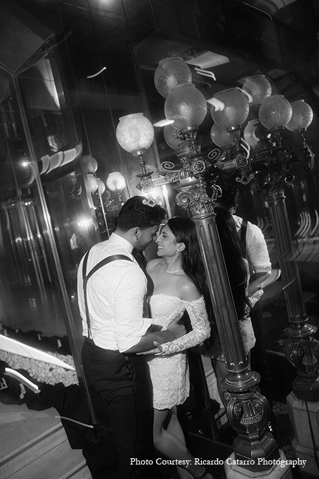 Anokhi Sandip Sriram Magodia shares, “An engagement is a promise shared—and I knew in my heart that Sridhar deserved a moment as meaningful as the one he gave me. It mattered deeply to him that we both wore symbols of our love, so while we designed his engagement band together, he had no idea I was planning a proposal of my own. I wanted it to be unexpected, heartfelt, and centred around music—something we both cherish. On February 2nd, exactly nine years after our first kiss, I led him to our rooftop under the pretence of dinner plans. There, under the twinkling NYC skyline, a cellist played ‘L-O-V-E’ by Nat King Cole. As we stood wrapped in that magical moment, I asked him, ring in hand—‘Will you spend the rest of our lives together, too?’ His joyful ‘Yes’ and happy dance said it all. ”