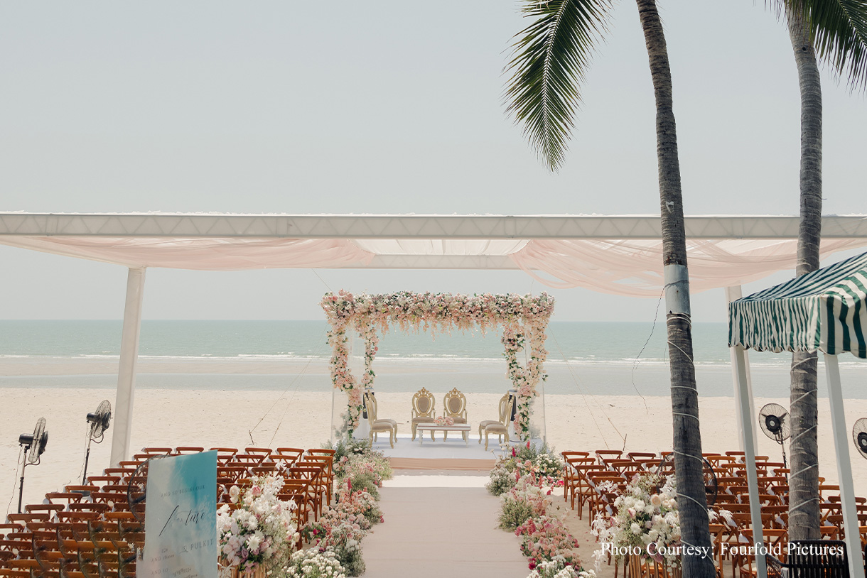 High-school sweethearts from the age of 16, Urban Planner Anshita and Finance Professional Pulkit shared many of their milestones by the ocean. In a befitting ode to their journey to love, the New Zealand-based couple chose to start their new journey by the ocean, embracing the coastal charm of Thailand for their dreamy wedding. Witness it unfold!