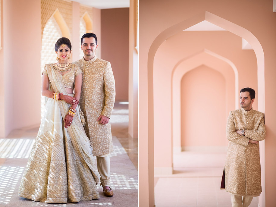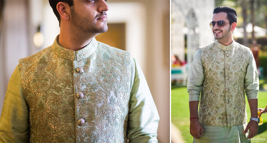 Grooms Outfits: Sabyasachi Mukherjee (Mehndi, Sangeet and Wedding); Canali (Reception)