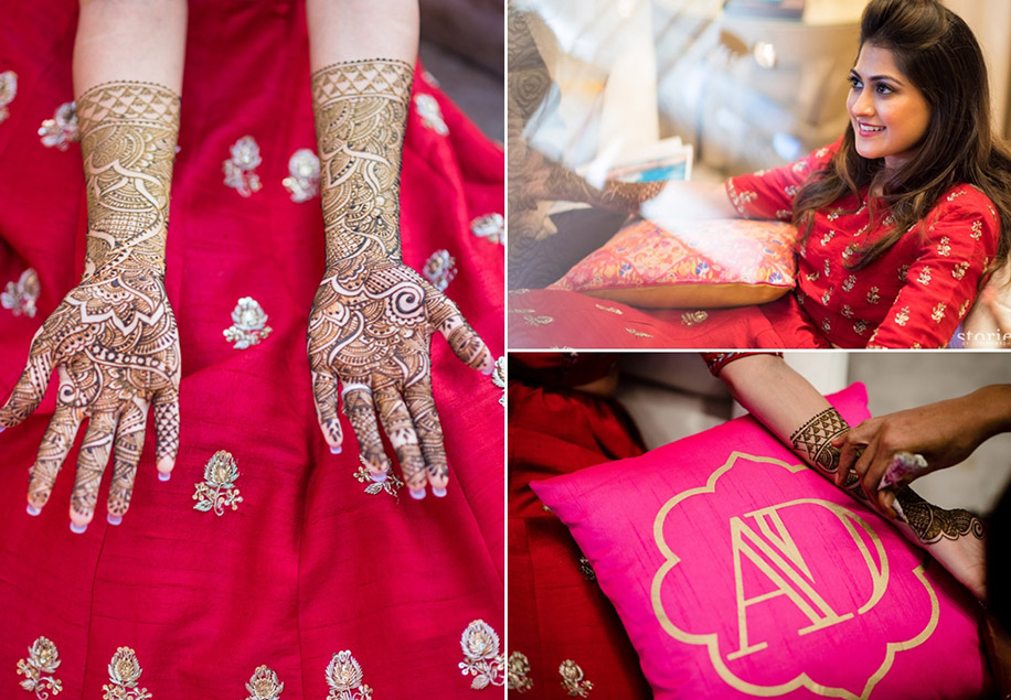 Bridal Trousseau: Jayanti Reddy (Mehndi application and Photoshoot), Sabyasachi Mukherjee (Mehndi, Sangeet, Wedding and Reception)