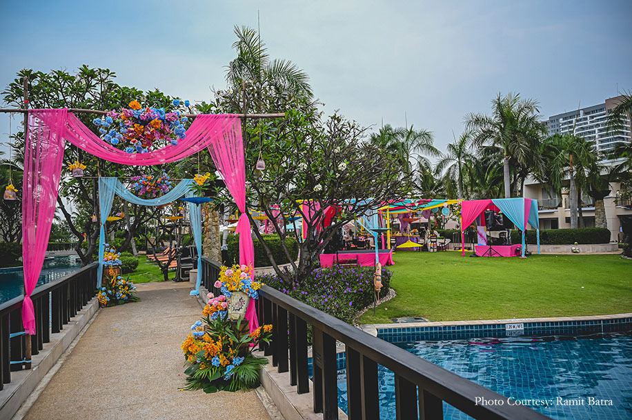 The bride shares, “We both wanted an intimate wedding with just our close friends and family. We had loved the Sheraton Hua Hin Resort & Spa in Thailand when we previously attended a friend’s wedding there. Even though we earlier tried to look for a different venue, we ultimately zeroed in on the same for its beautiful property and venues overlooking the sea, something I had always wanted”.