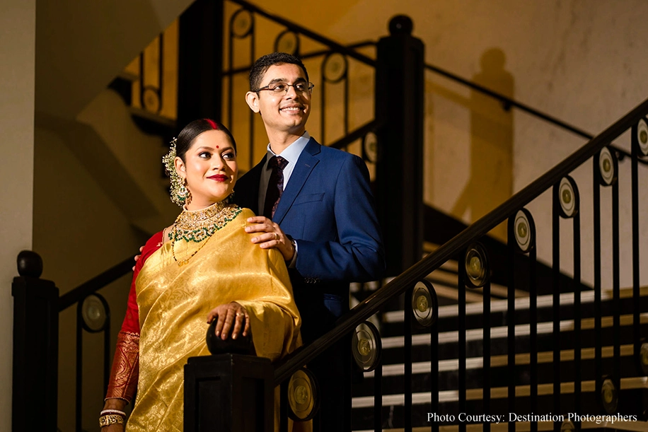 A heady blend of Bengali and Maharashtrian cultures, Anushka Mallick, daughter of Angshu Mallick, CEO of Adani Wilmar Ltd, and Omkar Mulekar’s wedding was hosted at the Jai Mahal Palace in Jaipur where the couple celebrated surrounded by the property’s picturesque environs. Planned by WeddingSutra Favorite – TailorMade Experiences, the union was a confluence of two rich cultures and featured a series of colourful celebrations.