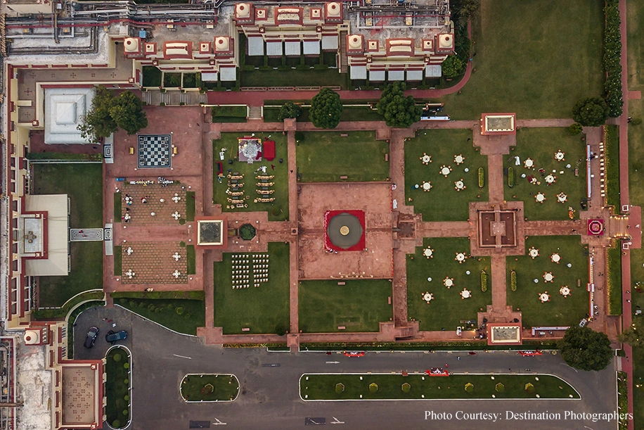 Set amidst 18 acres of Mughal gardens, Jai Mahal Palace is a luxurious heritage hotel that is bound to give every celebration a stunning backdrop. Located a mere 30 minutes away from the nearest airport, this property ticked every box on Anushka and Omkar’s checklist as they went about planning their wedding. From the delicious local cuisine and the well-designed rooms to the plethora of in-house venues, Jai Mahal Palace impressed them on every front!