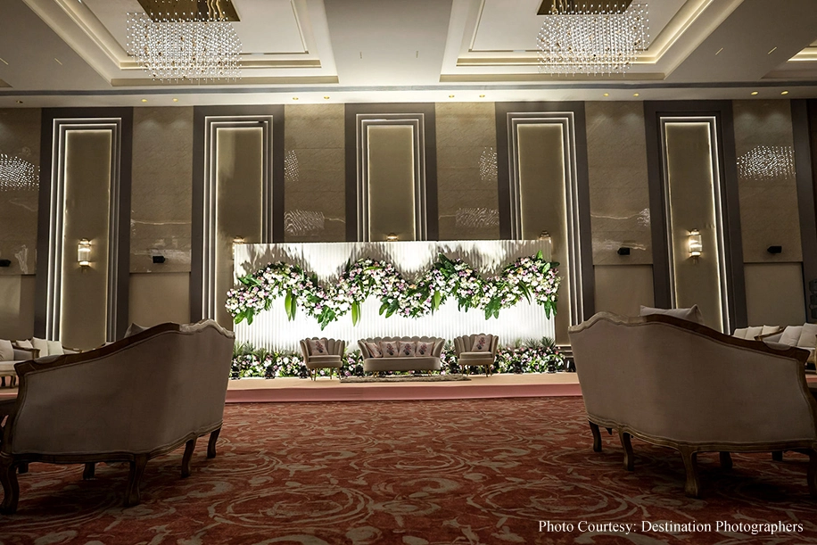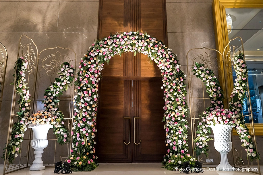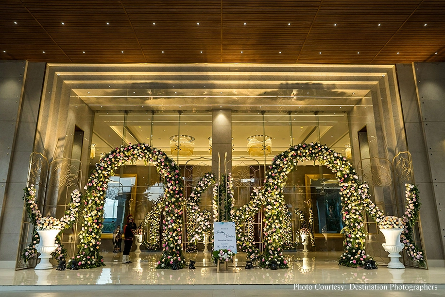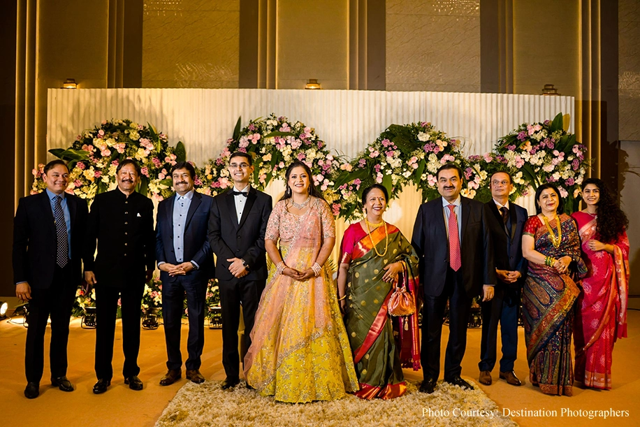 The wedding was followed by a grand reception in Ahmedabad which was attended by the prominent leaders of the Adani Group including Mr Gautam Adani, the chairman and founder of the Adani Group. Shashank shares, “All stops were pulled for the grand reception in Ahemdabad. Chefs were flown in from West Bengal and the spread was curated by Foodlink caterers.” Colourful arches brimming with pastel-hued blooms welcomed the guests while the Bengali dinner service ensured everyone was in high spirits.