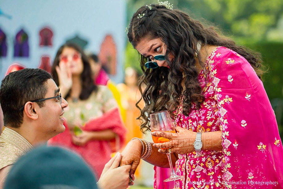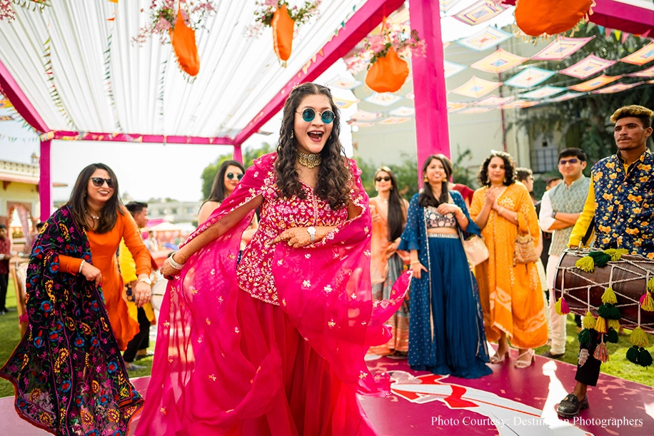 Bride’s Outfits: Aneesh Agarwaal (Mehndi), BINDANI by Jigar and Nikita (Sangeet)