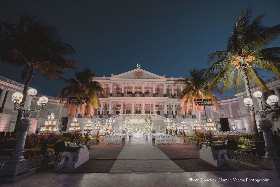 Taj Falaknuma Palace is a heritage hotel in Hyderabad. It used to belong to the Nizam of Hyderabad and has played host to royalty like King George V, Queen Mary, Edward VIII and Tsar Nichols II. The couple fell in love with this incredible palace hotel and knew this was the place for their big day.