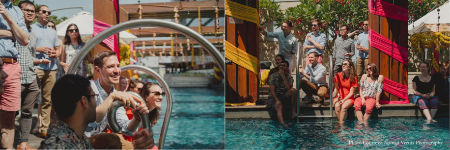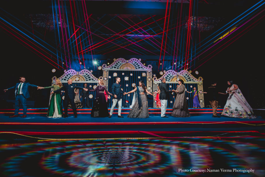 The highlight of the glitzy cocktail party was the stage and the quirky décor details at the entrance. All set for an entertaining evening, with lights and music to match, the performances were scintillating and the guests couldn’t stop dancing until late that night!