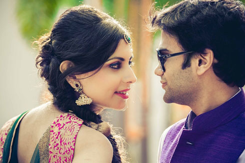 The families booked a catamaran to ferry the guests from Gateway of India to the Alibaug jetty on a sunny December afternoon. Says Asma:”The catamaran was decorated with flowers. We arranged for a guitarist on board so all the guests arrived singing and dancing.” The festivities kick-started with the Mehndi (the theme was ‘Colors of Punjab’). Asma says, “Lots of colorful dupattas were used by Dreamz Kraft, the decorators to create the canopy that brightened the entire atmosphere. The other decor elements included bangles, crystals and gottas. Big posters of men and women doing bhangra were used in the backdrop. There was a huge cut-out of a truck that could be used as a prop for the pictures. There were dholwallas, games for children, and a parrot reader.” Asma wore an asymmetric lehenga with a corset and Kitam opted for a Punjabi style kurta-salwar teamed with a Nehru jacket.