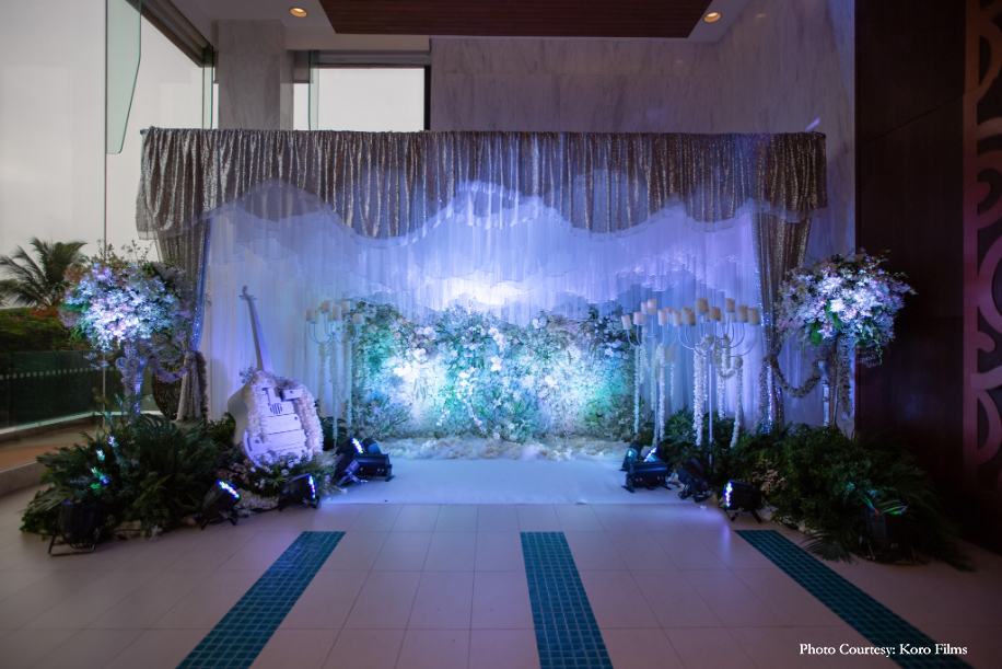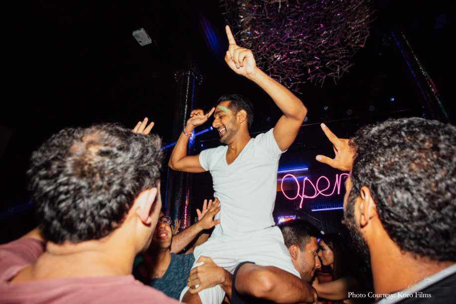 The celebrations kick-started with a welcome dinner that incorporated a summer soiree theme. The bespoke decor had a rustic feel with fairy lights and wooden props and a live band that played soft music that created the perfect vibe for the guests. Avi wore a smart printed jacket, and Prab wore a midnight blue silk gown with a diamond and sapphire necklace. The Welcome Dinner was followed by a full moon after party at the Black nightclub. A neon-themed party with glow sticks, face paints and lots of shots had guests dancing till the wee hours of the morning.