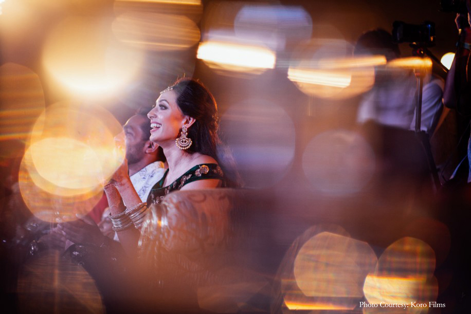 This regal theme of the sangeet witnessed a glamorous mix of blue, black and gold color palettes in the decor. The evening saw some fun dance performances by the bride, groom, family, and friends.