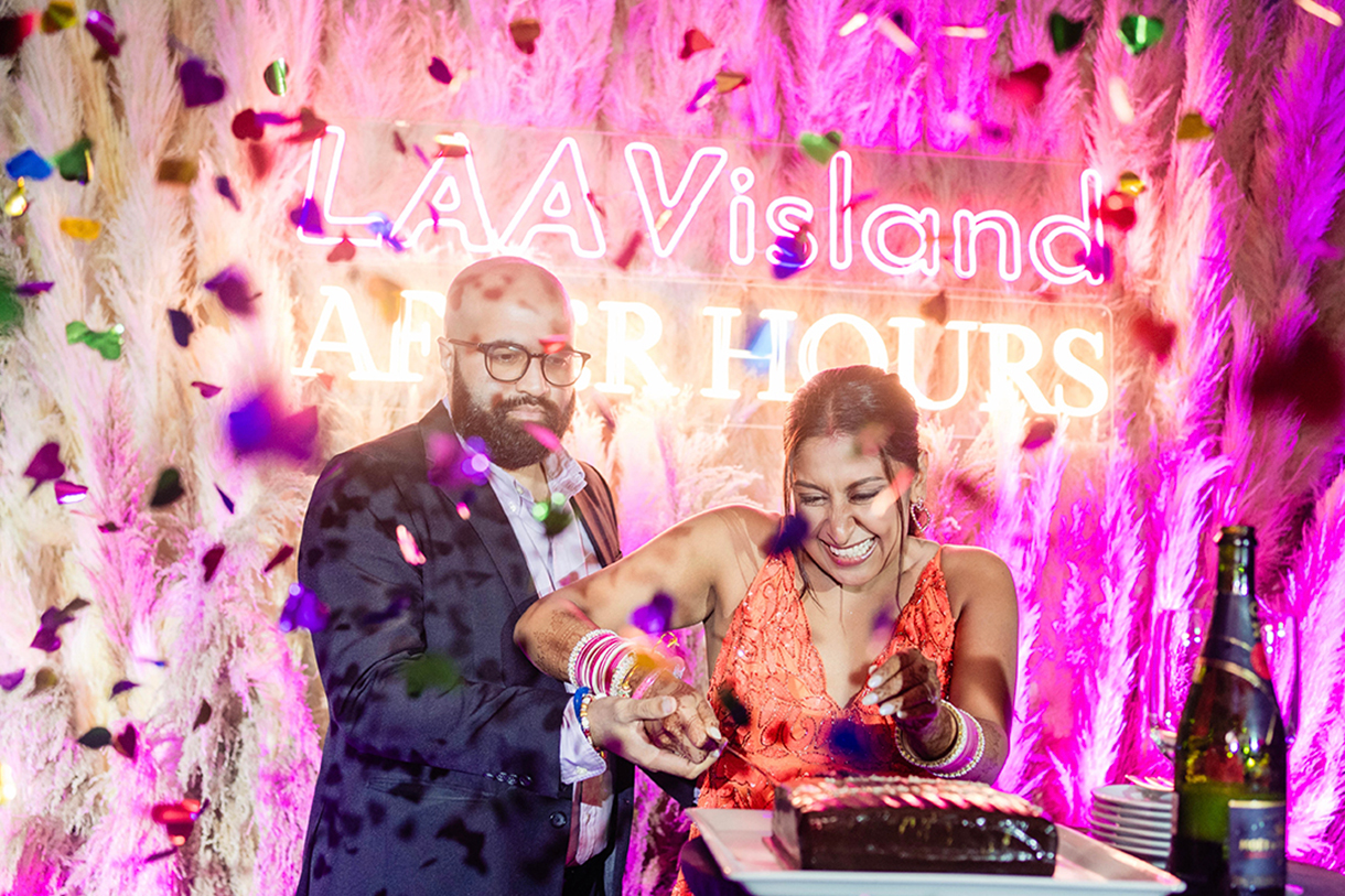 Avina shares, “It was finally time to let our hair down! We even had guests get a custom ‘#LAAVisland’ stamp on their arms before they entered the venue to mimic a nightclub experience. We popped champagne, cut cake and danced until sunrise.”