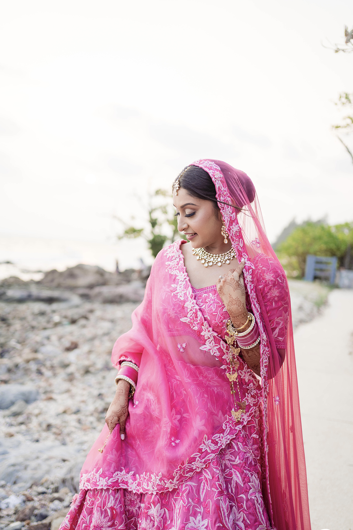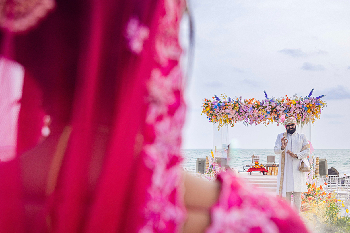 When it came to choosing the venue for their March wedding, Thailand with its convenient location understanding of Indian cultures and top-notch hospitality hit all the right spots! Avina tells us more about the venue selection process, “I’ve always dreamt of a beach wedding so that was a priority factor when we were scouting for venues. Additionally, we wanted a bit of an isolated location – where all our favourite people are together under one roof for 3 days of pure love and celebration. Rayong Marriott Resort & Spa fit the bill perfectly – it is a pleasant 2-hour drive from Bangkok (with direct flights into Bangkok from Singapore and Delhi where most of our guests were from) and once in Rayong, you are pretty much in a remote location. And of course, it is by the beach! So, it felt like we had a private island for our wedding weekend. One of the things we loved about the Rayong Marriott was the number of venue options within the hotel. From two beachside spots to two lawns and a ballroom, we were spoilt for choice when planning our wedding – and could ensure a different location for every event.”