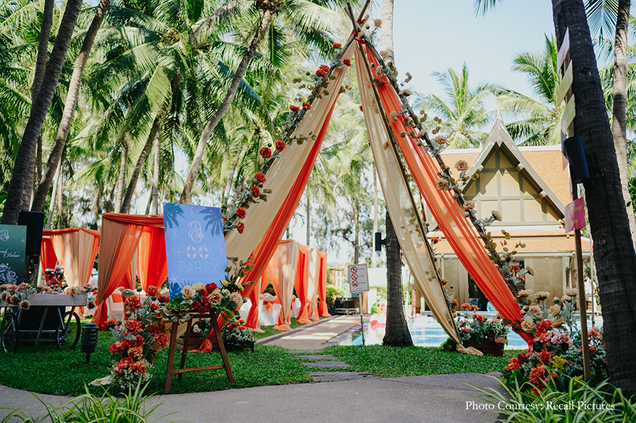 Planning a destination wedding can get quite overwhelming – it involves juggling work and everyday duties with sampling and finalizing vendors, so the couple entrusted Mpire Events with the responsibility of creating their dream wedding. They conceptualized distinct themes and decor for each function with the help of a local vendor, Kanoknit Decor.