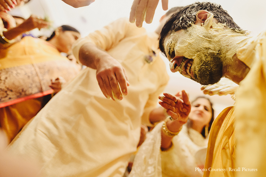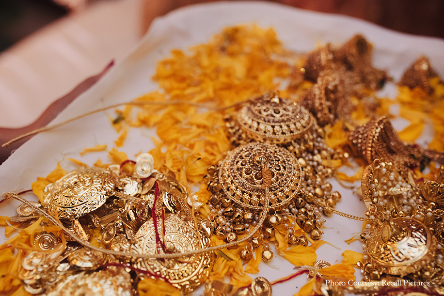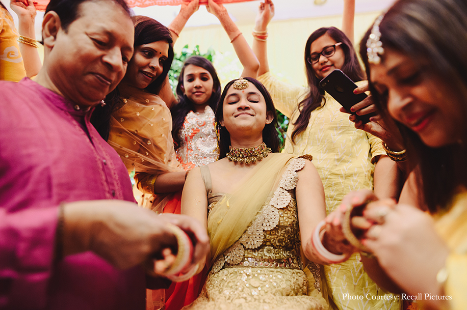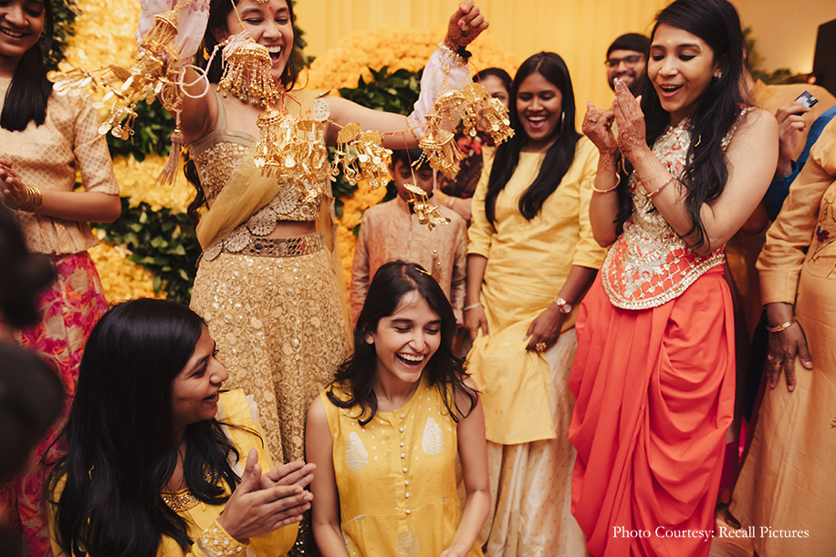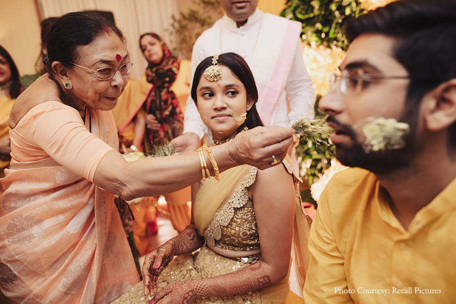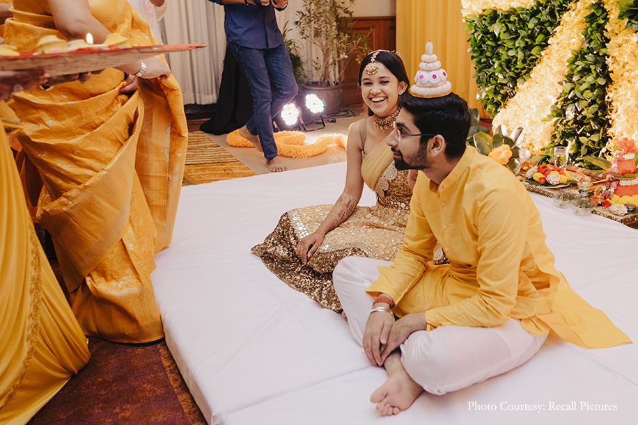 The haldi ceremony was very traditional with sunny yellow decorations. The function saw several elements from the Bengali culture, as the couple hails from Kolkata.