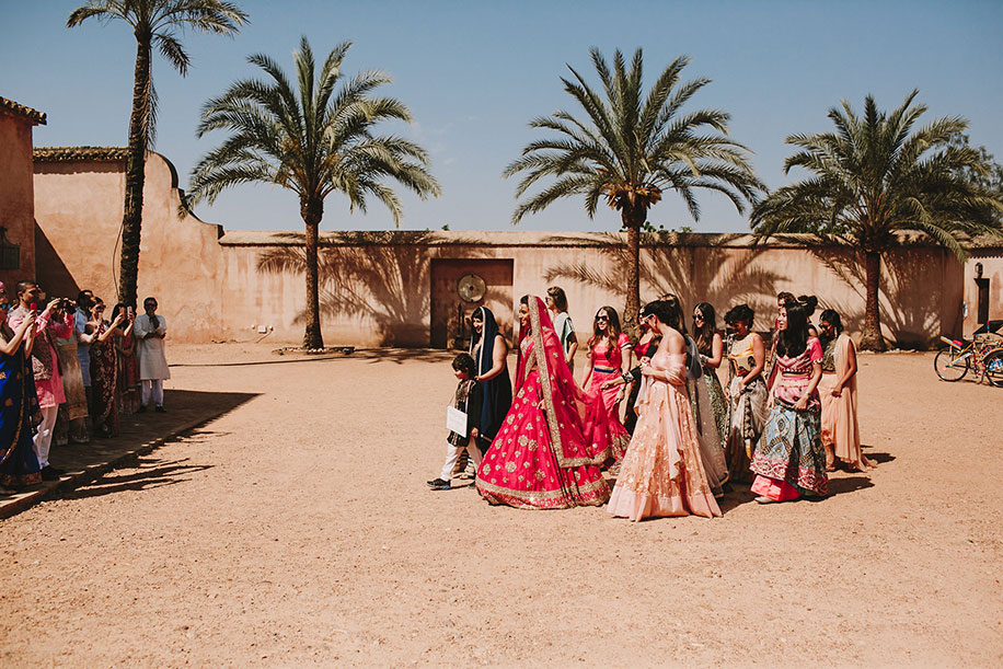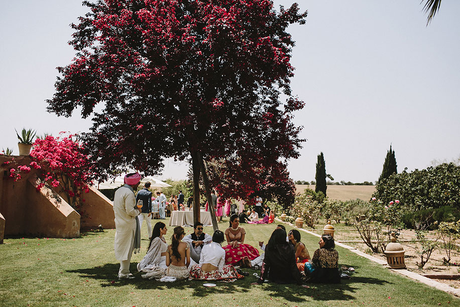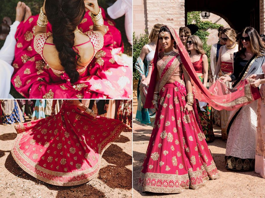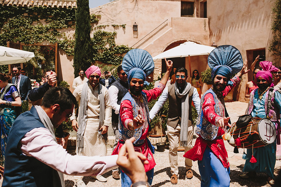 “Our main focus was entertainment and fun, and we wanted to give the guests something more than just the traditional formalities of a wedding. We had hired drummers from Nikki Beach Marbella, and bhangra dancers (that included a Spanish guy!) and dhol players from Barcelona who were just awesome. We had the most exotic mix of tropical flowers, colors and textures specifically chosen by Indira. The dance that our skit master groomsman Pavan had organized was absolutely incredible and hilarious, but the look on Arjun’s face was priceless when I got up to join the bridesmaids in a dance.”