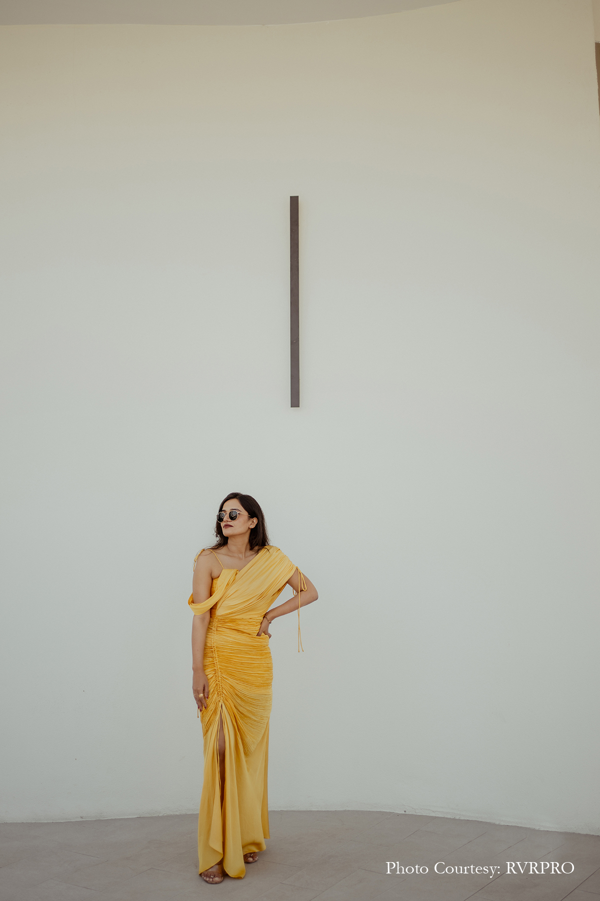 Keeping it intimate and fun, the haldi was a sunlit affair where the couple had a gala time with their loved ones. The bride looked stylish in a ruched one shoulder gown with a leg slit while Prahlad kept it casual with a pair of jeans and a white shirt.