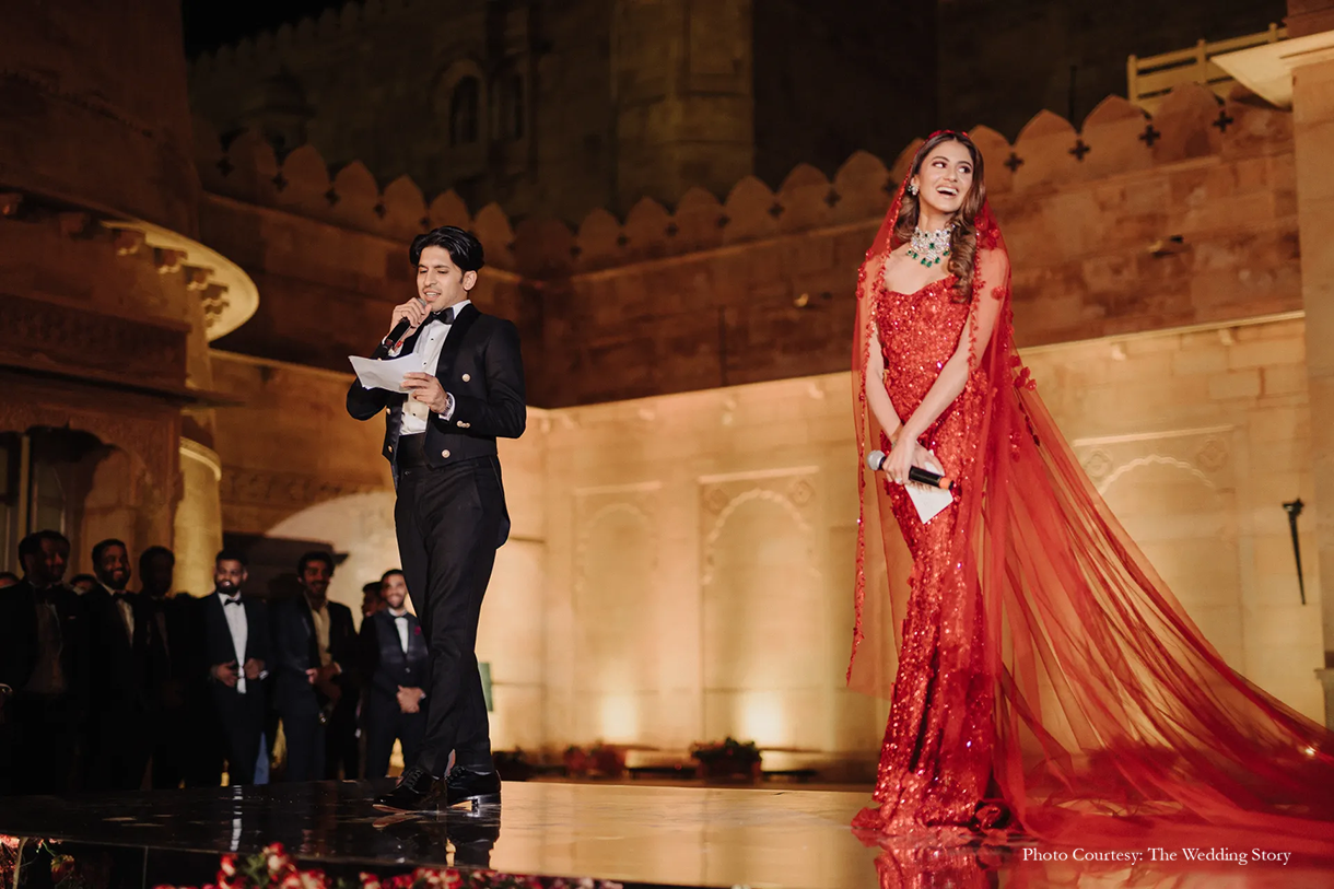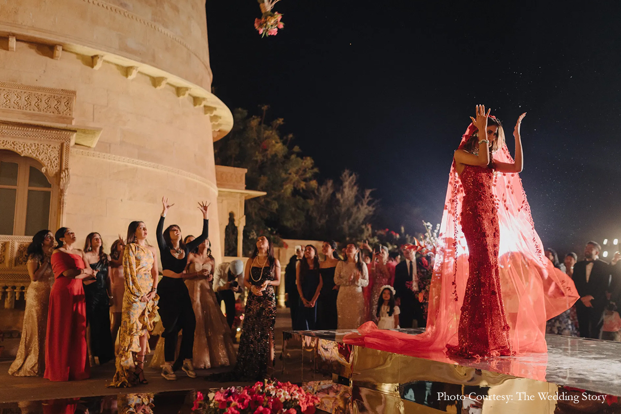 Bianca Sagar, the Creative Director at Renu Zaveri Jewellery and Dev Sagar, the founder of Manoj and Dev Jewelry tied the knot in style with a lavish destination wedding in Rajasthan. Planned by WeddingSutra Favorite – Morani and Soorma, the couple fearlessly experimented with unique themes. Designing their dream wedding was WeddingSutra Favorite – House of Vivaah who reflected the duo’s love aesthetics and minimalism.