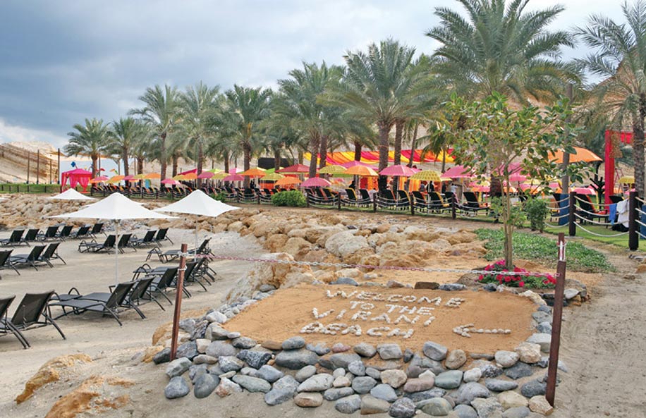 The Sangeet (Musical Ceremony) at Ballroom ABC in the evening saw vivid deep blues and rich golds being used in the décor to follow the theme of an artwork effect. The family, keen to continue the grandeur, performed as many as 17 choreographed dances at the event. The highlight of the evening though was a dance performance by the couple themselves for which special visual effects, including LED splits, were used. One of the most memorable moments that evening was when ‘We the Viranis’, a song specially composed for the occasion was sung by the whole family. This was followed by a scintillating performance from an Indian Idol finalist, Rahul Vaidya. Guests then headed to a post-Sangeet party at the Bait Al Bahr Bar.