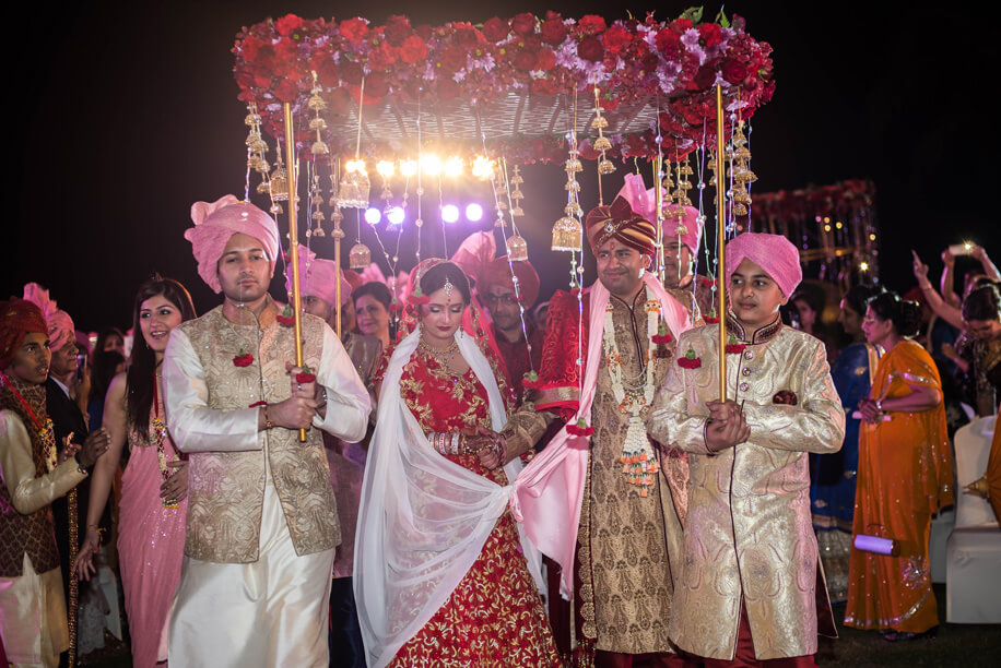 The mehndi next day, held by the pool, with lots of colorful flowers and a touch of candy pop, was a great hit. That evening we hosted a masquerade and dinner. Rahul Vaidya performed and had everyone grooving on the dance floor. It was a fun party especially because everyone was behind a mask.