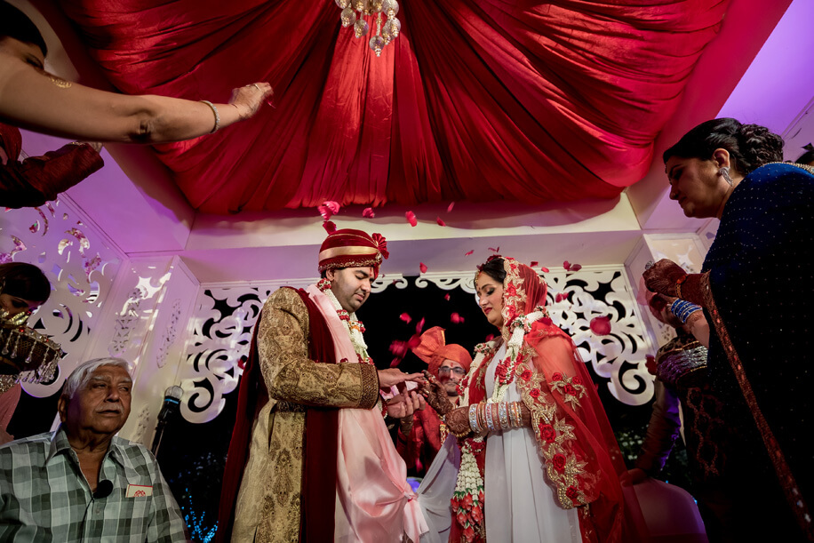 Our very traditional wedding ceremony was held the next evening at the stunning mandap built on the pool, with a very regal Indian design.