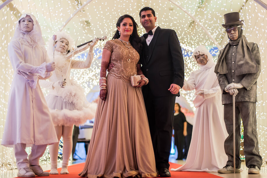 We started with the Sangeet for which we had a musical theme, Shaam Shandar, which was all about dancing, music and entertainment. We made our entrance on a turn-table on stage and it was very Bollywood!