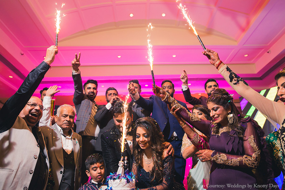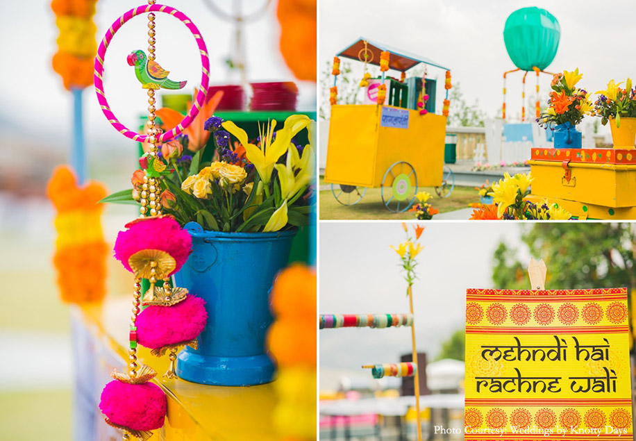 “I wanted the mehndi to be a riot of bright color. I told the planner I wanted the colors rendered in fun props and that’s exactly what they did – multi-colored kettles, cart, colorful glasses, etc. made the decor pop out even more. There were multiple games for the guests and there were dholwalas and a Punjabi dance troupe for more fun!”
