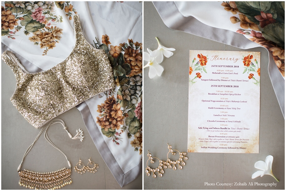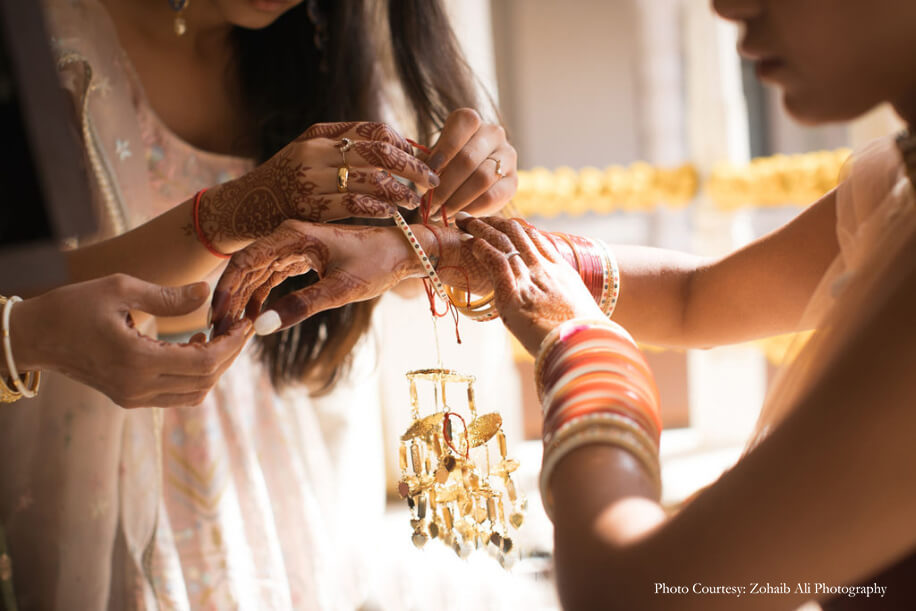 Bride’s Outfits: Sabyasachi (Mehndi and Wedding), Anamika Khanna (Sangeet), Ritu Kumar (Haldi), Manik Jassal (Chooda and Reception), Faraz Manan (Reception), Ashi Studio (White Wedding), Pronovias (White Wedding Reception)