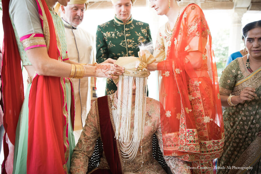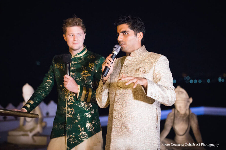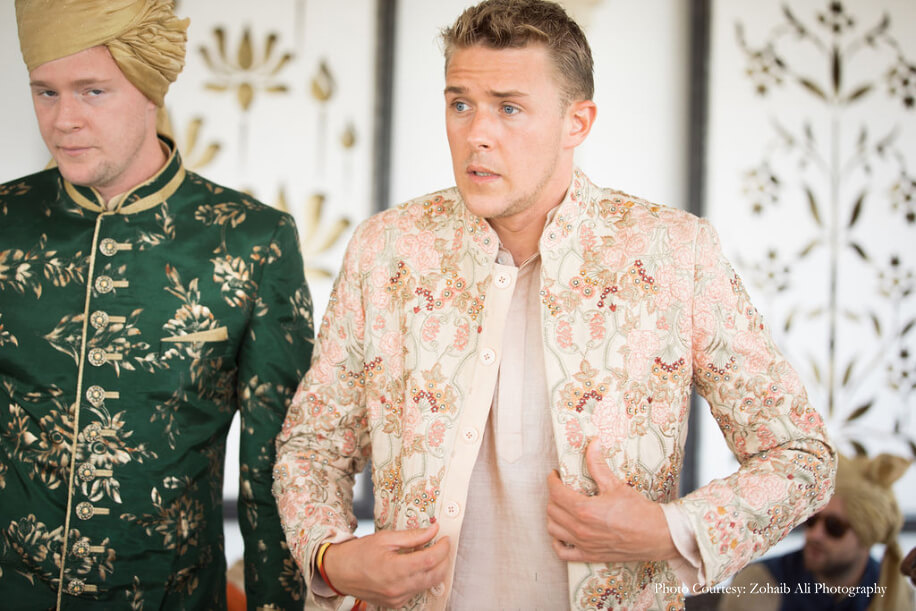 Groom’s Outfits: Varun Bahl Couture (Mehndi and Sangeet), Sabyasachi (Reception)