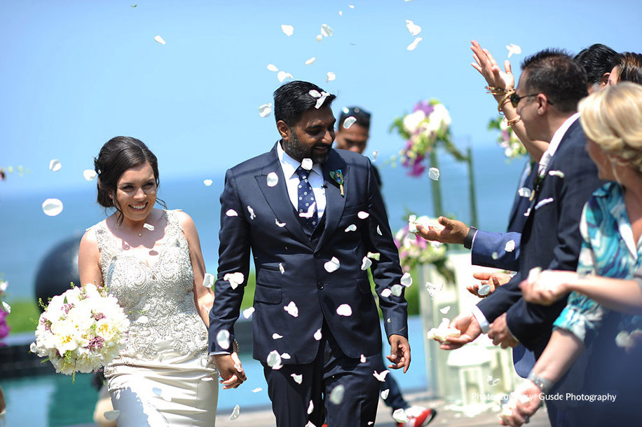 Dipesh and Julie hosted their dual wedding ceremonies at the luxurious Seseh Beach Villas in the tropical paradise of Bali, in Indonesia. This property in the fishing village of Seseh overlooks the azure waters of the Indian Ocean, offers a private beach and is surrounded by lush greenery.