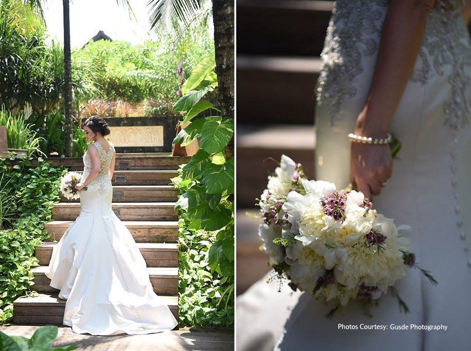 The wedding ceremonies were organized by Bali-based Varawedding. From the flowers to the wines that were paired according to the tastes of the guests, the Varawedding team took pains to make every detail was perfect. The Indian wedding ceremony was held by the pool, and the white Christian wedding was organized by the beach.