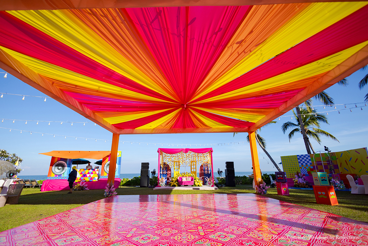 The couple hosted their beachside festivities during the chilly month of December when they could enjoy the hospitality of Thailand completely. To capture their precious moments, the couple chose Weddings by Reflections. Bride Divya shares, “Weddings by Reflections gave us an amazing experience! They were on their toes the entire time and transformed our memories into beautiful videos and pictures. Working with them was a seamless experience and we struck up a rapport instantly.”