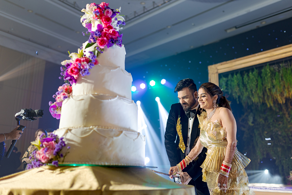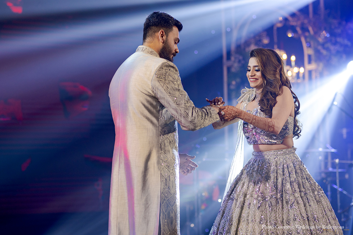 Bride’s Outfits: Liz Paul (Mehndi), Mireya Sanya (Welcome Dinner), Swish by Dolcy and Simran (Sangeet), Sabyasachi Mukherjee (Wedding), Amit Aggarwal (Reception)